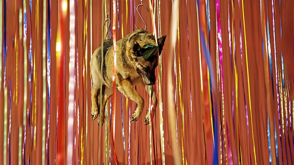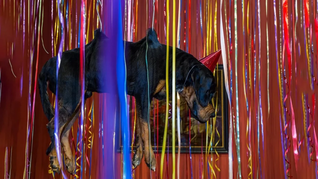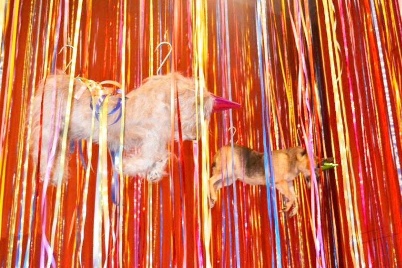 Искусство не всегда должно доставлять эстетическое удовольствие — об этом нам и говорят работы Фабра. Особенно цепляет контраст между телом бедного животного и праздничной обстановкой, в которой оно висит на крюках для мяса. Как будто нам говорят: вы видите их как часть интерьера, забавную игрушку и не более того, именно так ваше отношение к животным выглядит в материальном мире.