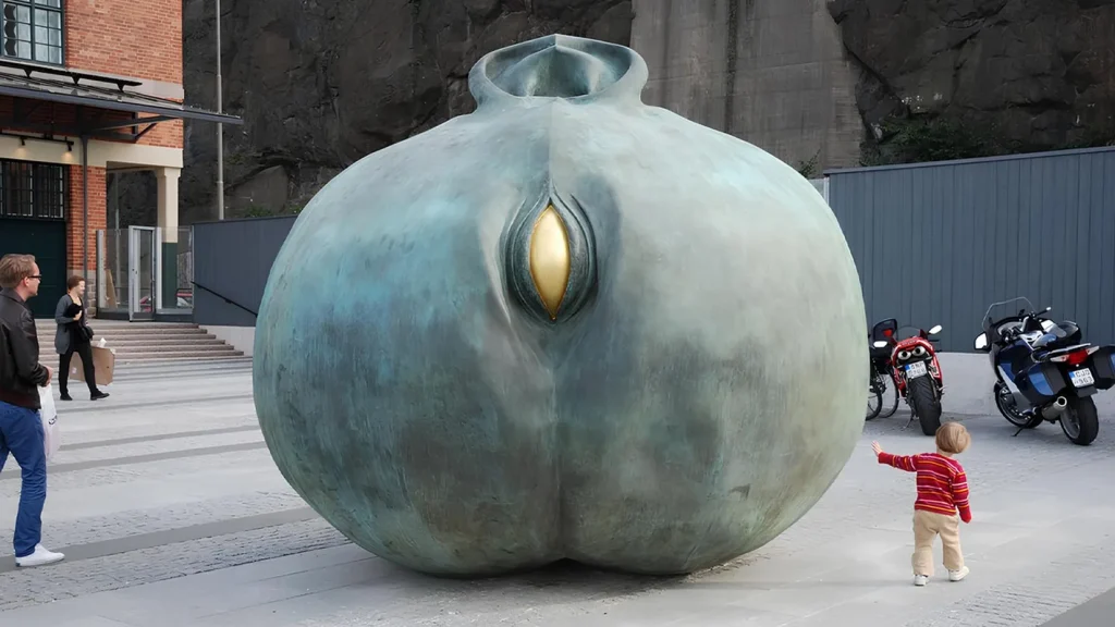 Еще одна интересная работа — скульптура «Торс» Дена Уолгерса. Она была установлена в 2010 году в Музее фотографии в Стокгольме. Сбоку объект напоминает голову ребенка с одним глазом и одним ухом, а не сбоку — тут уж у кого на что фантазии хватит. А как подобная пластика обретает дополнительные функции в современном городе читайте в отдельном разборе.