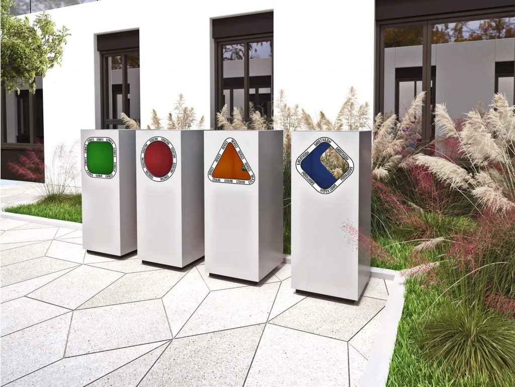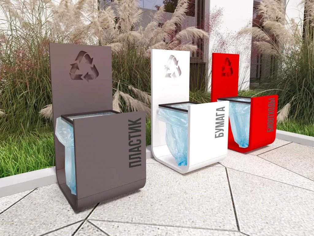 И урны и большие зоны можно поделить по объему, способу сбора мусора, типу установки и дополнительным функциям.