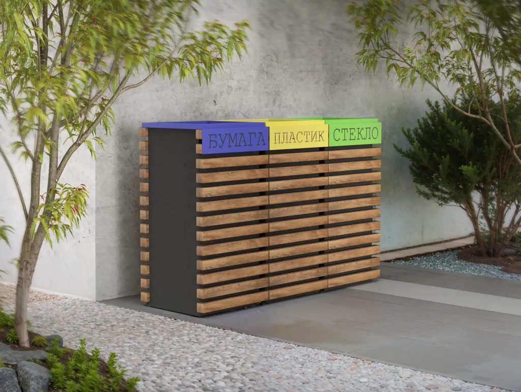 Стоит упомянуть, что, чаще всего, урны и ограждения площадок ТКО собираются из элементов разного материала — металла и дерева, например. В этом случае при выборе объекта следует анализировать каждый элемент отдельно, оценивая, насколько сильно он подвержен погодным изменениям или насколько сильно влияет на общий внешний вид пространства.