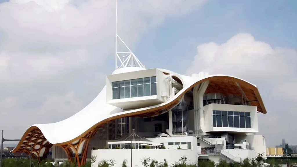 Центр Помпиду-Мец, Франция — шедевр с деревянной кровлей-паутиной. Действующий музей — блестящий пример того, как дерево позволяет создавать смелые, авангардные формы и перекрывать гигантские пролеты, соревнуясь со сталью и железобетоном в легкости и элегантности.