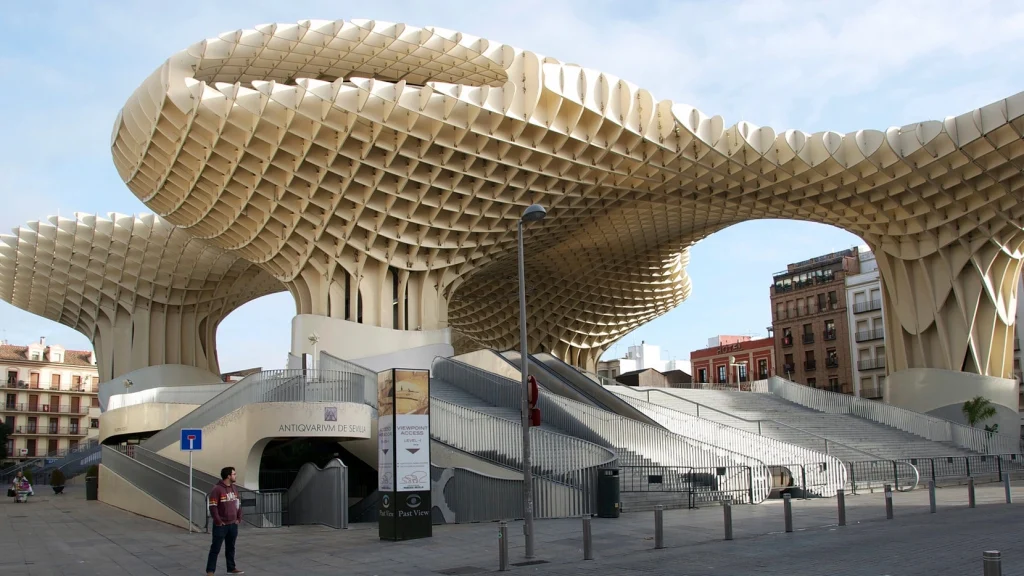 Метрополь Парасоль, Испания — самая большая деревянная конструкция в мире. Гигантское многоуровневое сооружение доказывает, что дерево может быть использовано для создания масштабных общественных доминант, меняющих облик целого района.