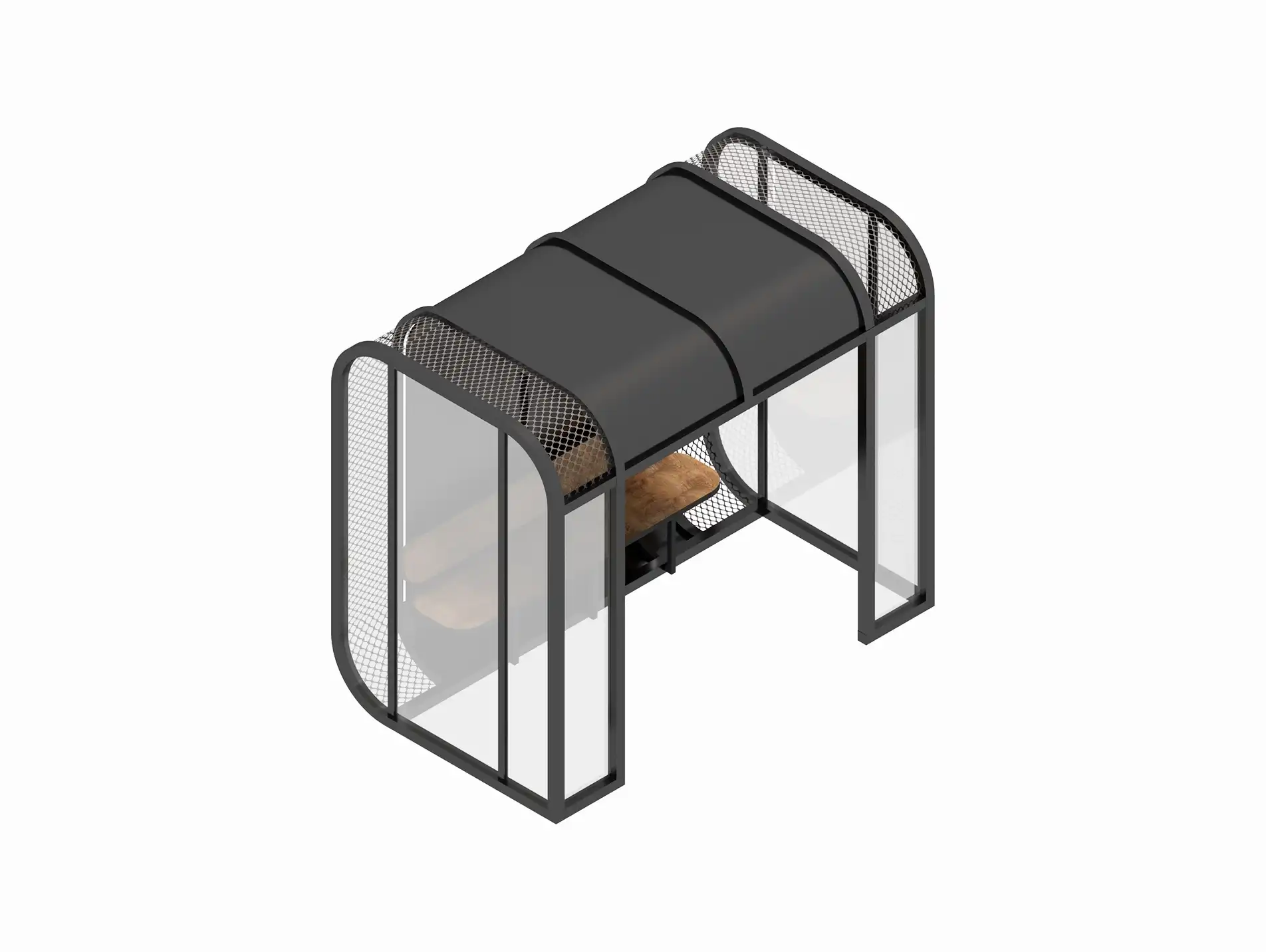 Современный павильон с подчёркнутой геометрией. Комбинация дерева и металла, расширенное остекление. Работает как архитектурный объект — не только функциональный, но и акцентный.