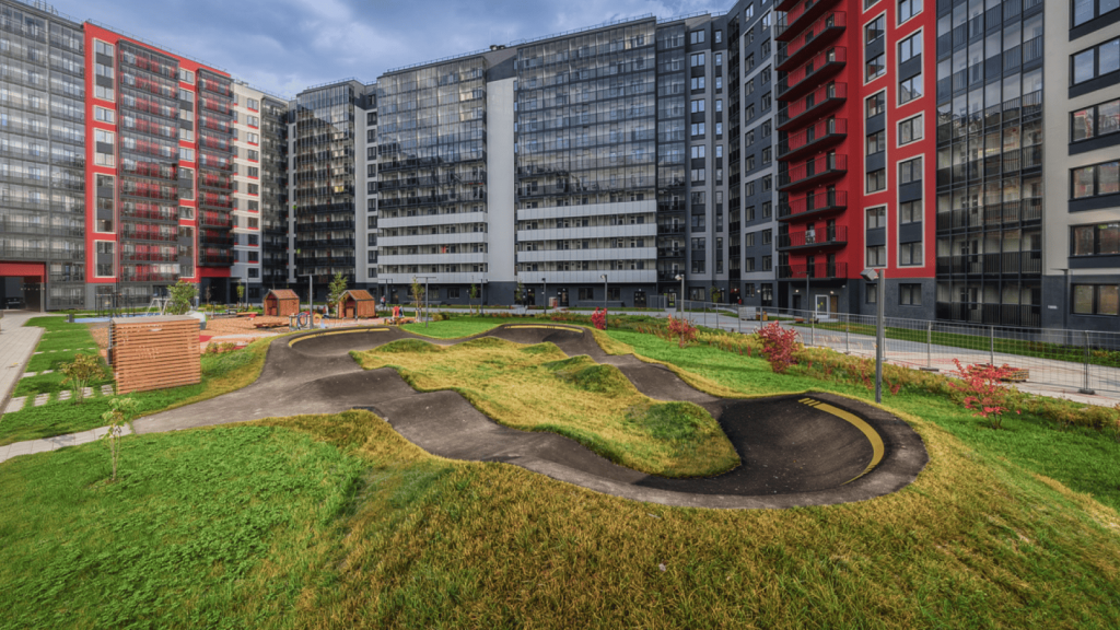 - Для подростков все чаще добавляют памп-треки и рампы, скалодромы.