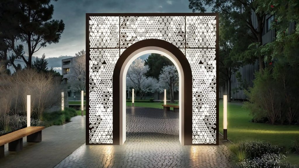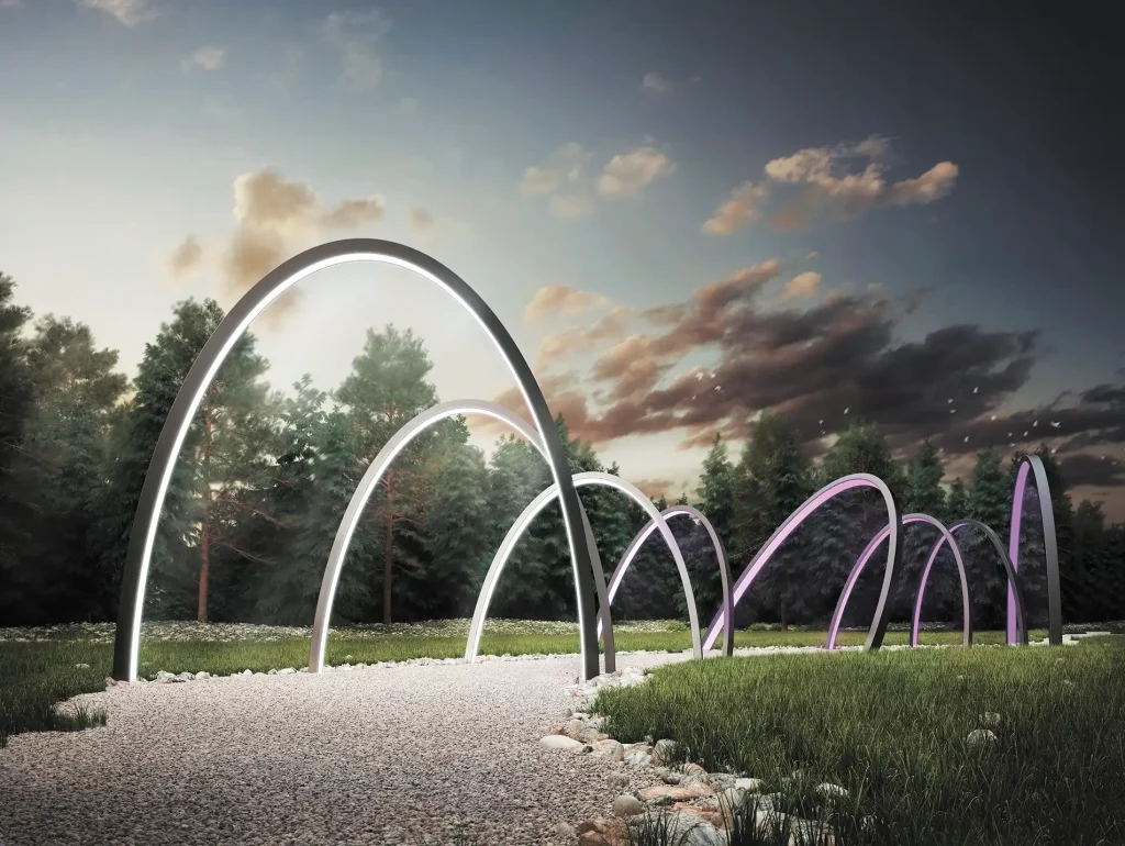 Сюда же относится и температура и мощность освещения, которые влияют на циркадные ритмы человека. По мере сокращения светового дня в осенне-зимний период освещение и его качество становятся как никогда важны. Наличие достаточного количества света на улицах напрямую влияет на то, насколько безопасным кажется то или иное пространство, а также снижает риск ДТП. Для обеспечения достаточного уровня видимости задействуют опоры освещения, а в качестве дополнительного источника света можно выбрать МАФ с подсветкой.  Например, существуют световые арки, которые помогают зонировать территорию, организовать пешеходные потоки, подсветив их.