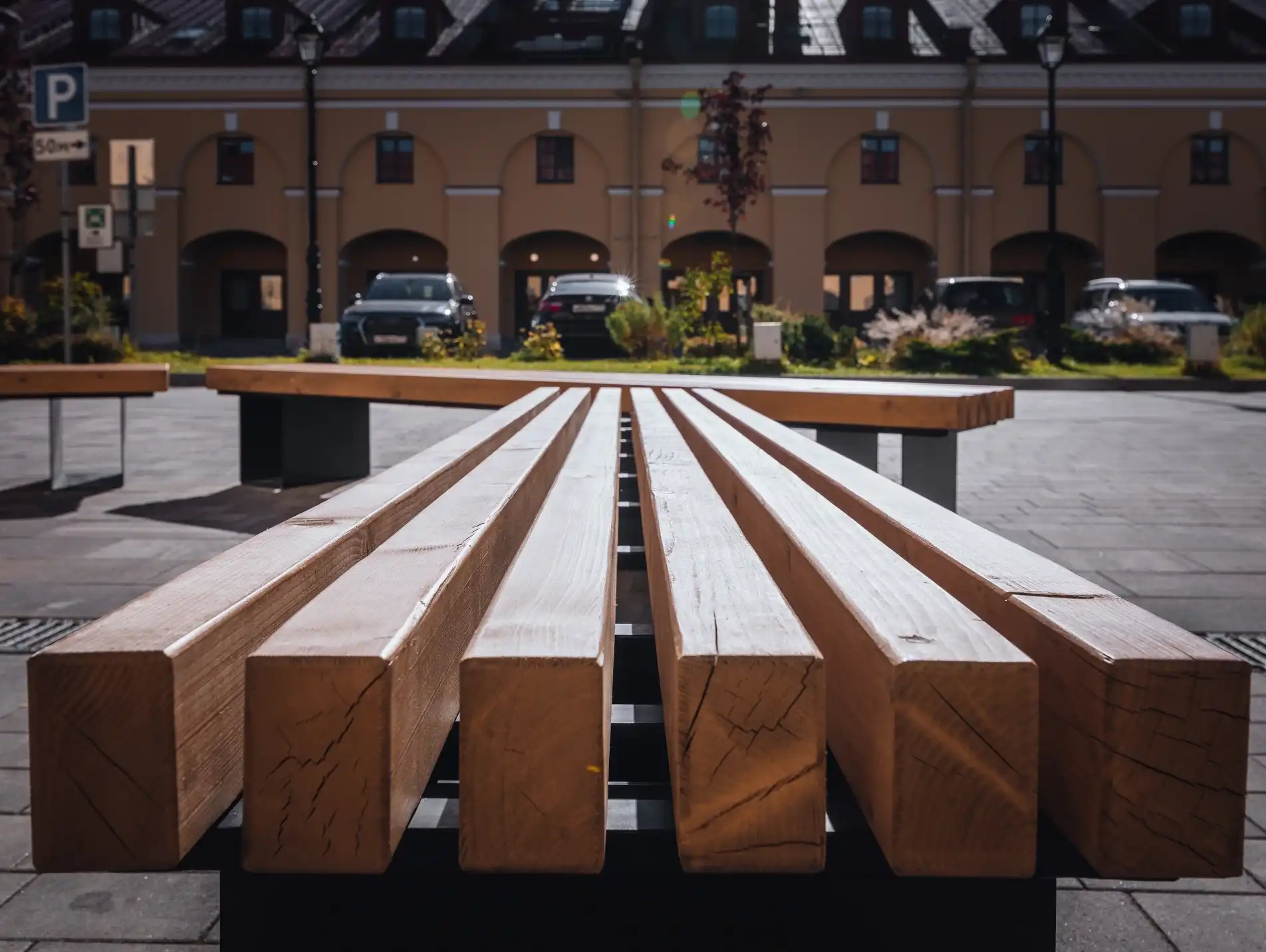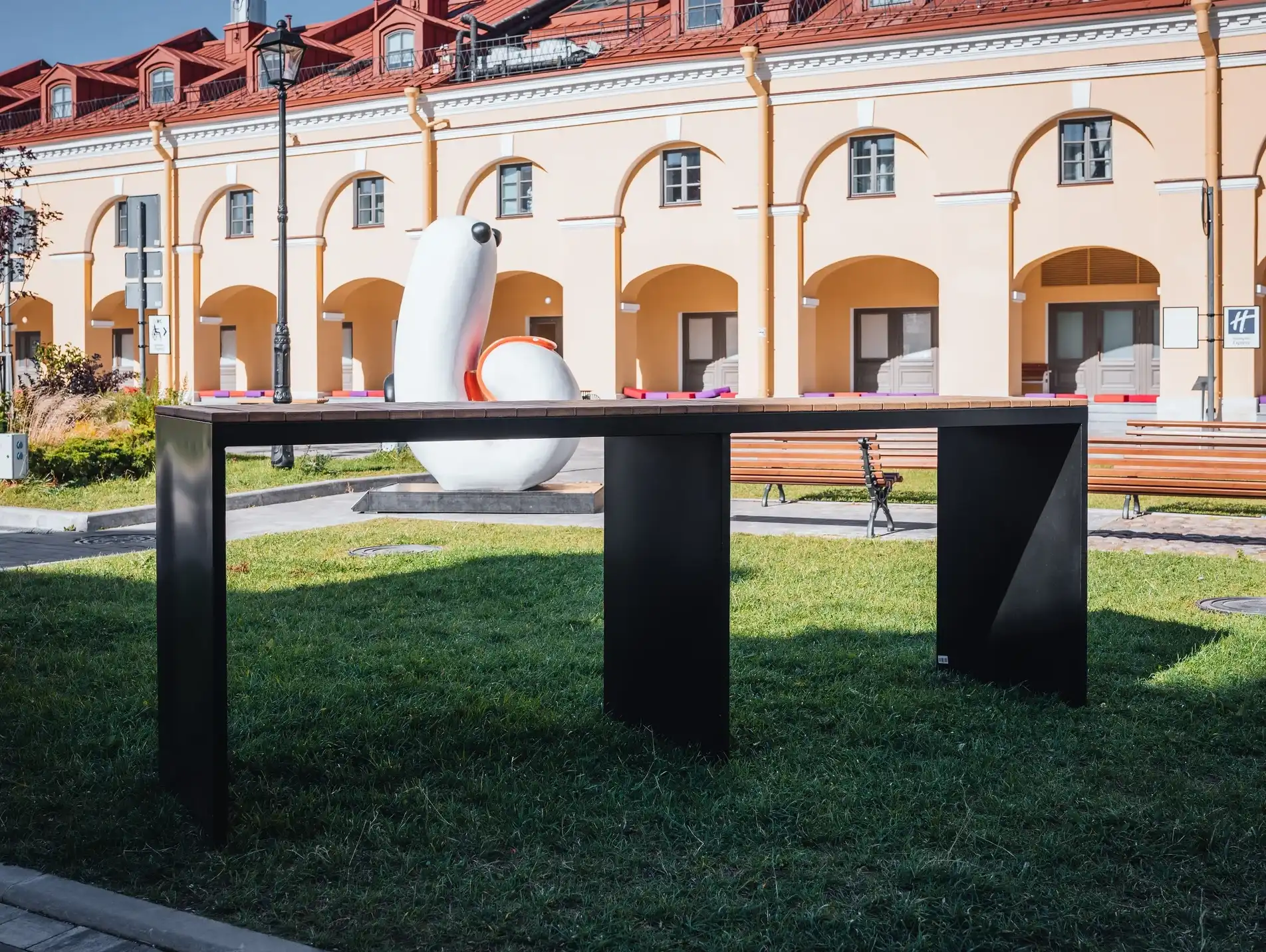 Мы установили различные скамейки для отдыха горожан, а также высокие столы для того, чтобы можно было перекусить на открытом воздухе.