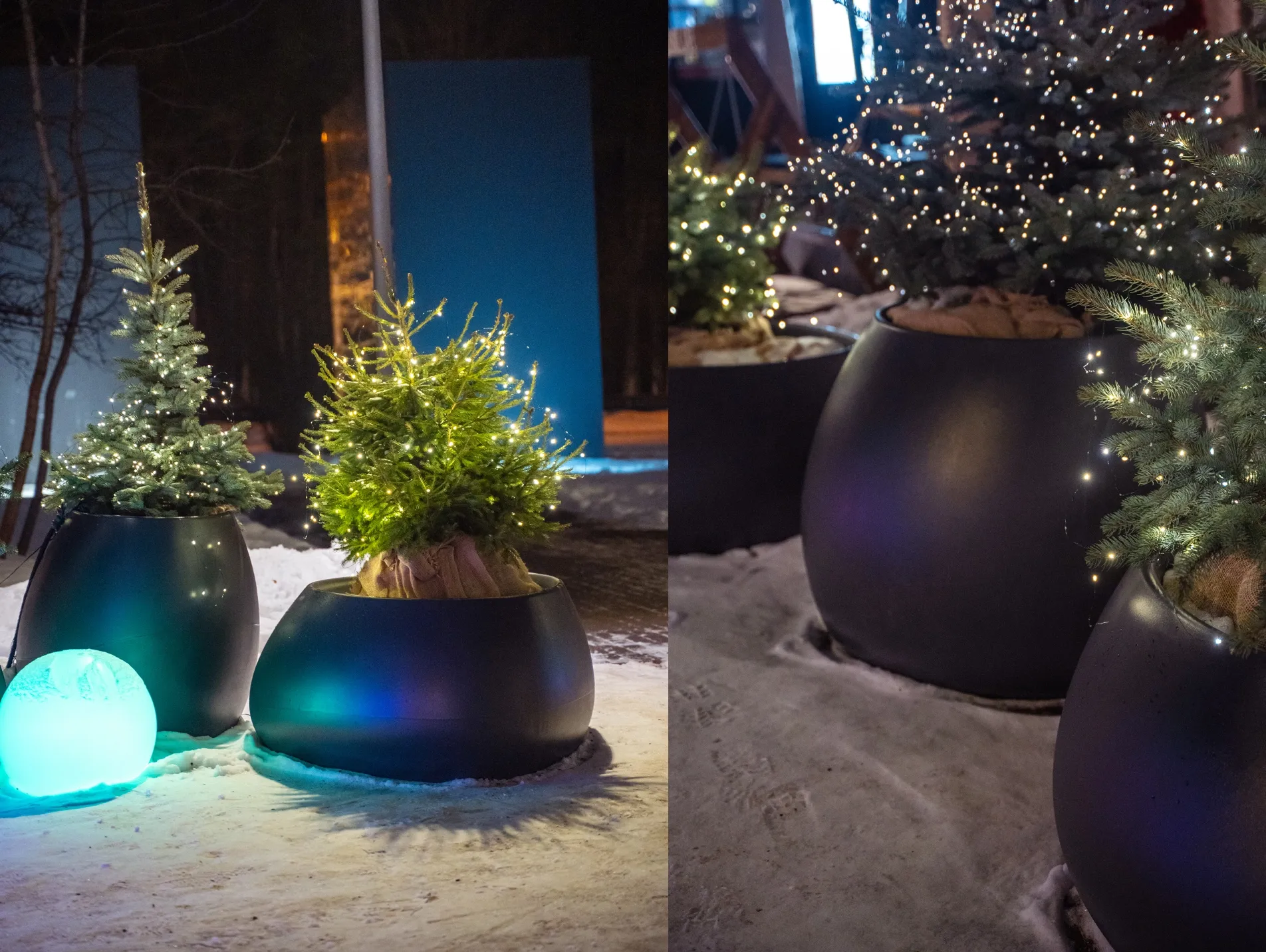 Дополнительный акцент создаёт композиция из кашпо Classic в сочетании со световыми элементами Orby.