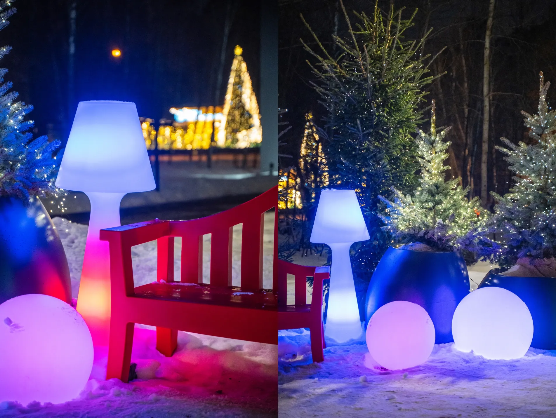 Парк Малевича стал ключевой точкой притяжения — здесь организована масштабная зона с шарами Orby. В общественных пространствах установлены скамьи Province, кашпо Bend с живыми елями и торшеры Nostalgie.