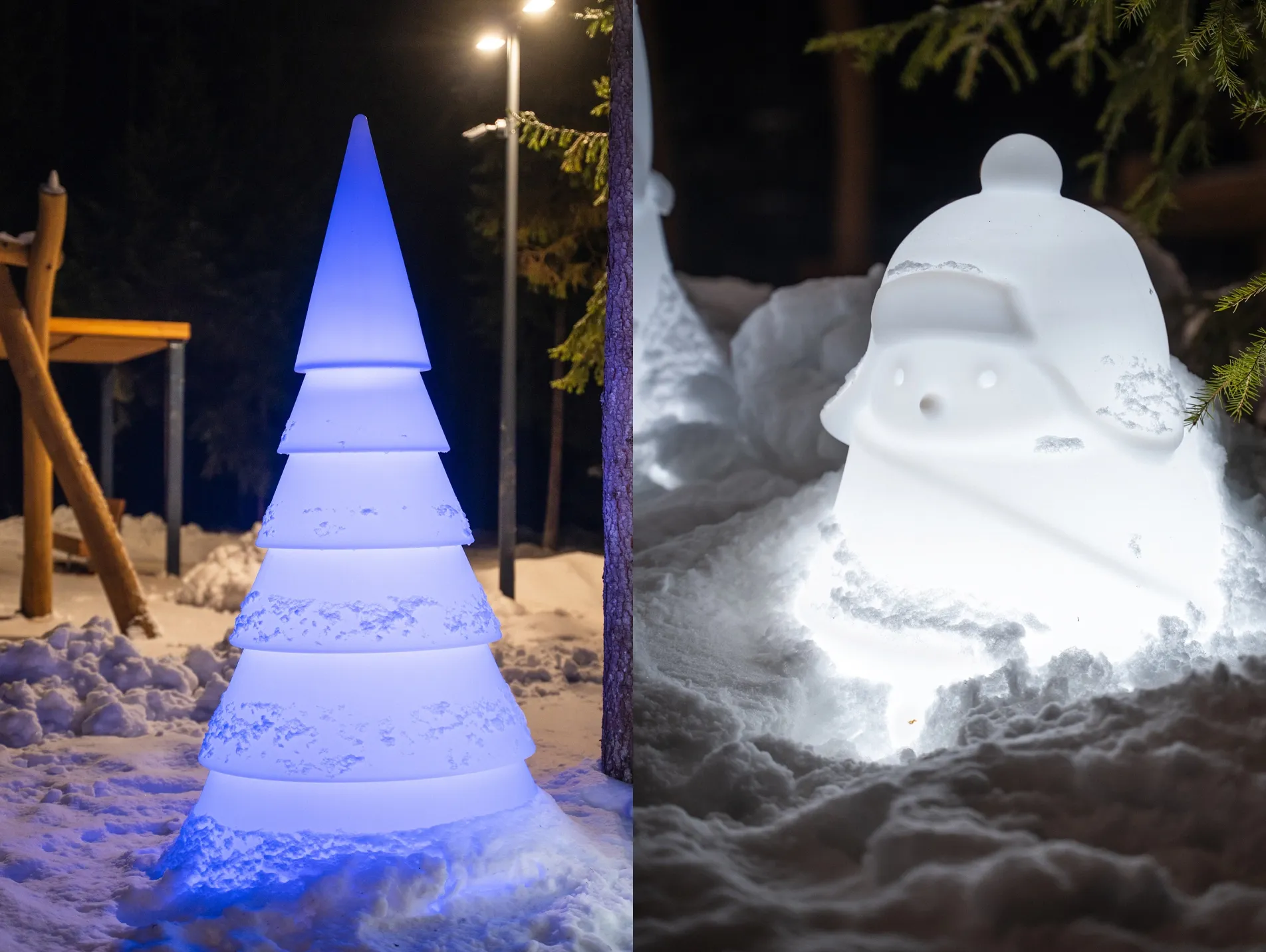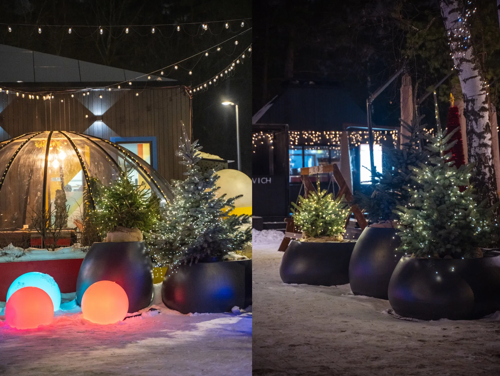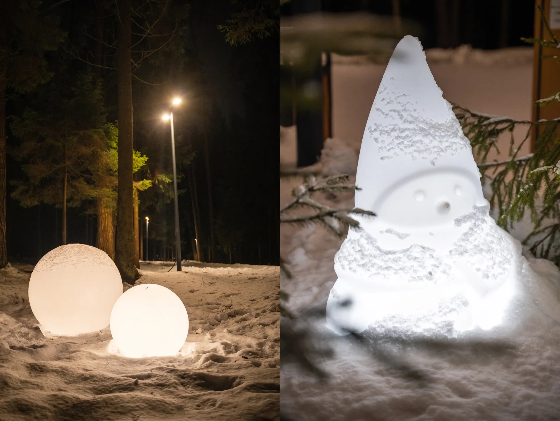 В лесной зоне Маслово сформированы зимние композиции с использованием шаров Orby, светильников Mr. Snowman и объектов Eiswald.