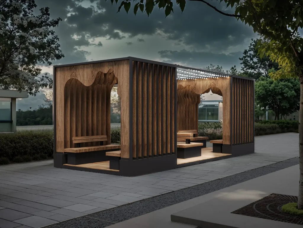 Наиболее интересный тренд — это слияние светового прибора и конструкции в единый объект. Свет становится неотъемлемой частью скамьи, перил, игрового элемента или беседки. Например, сиденье со встроенной подсветкой или пергола с LED-лентами, вплетенными в каркас, создают футуристичные и уютные островки в городской среде. Найти вдохновляющие примеры подобной интеграции можно изучив коллекции производителей на Urbanatura.